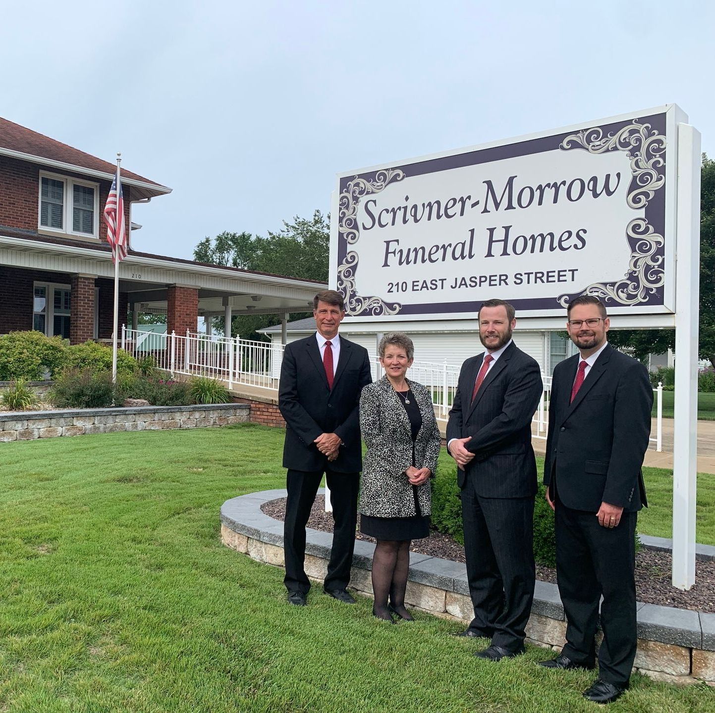 Scrivner-Morrow Funeral Homes were founded in 1952 by Jim and Honey Scrivner in Versailles Missouri. Their dream was to provide quality funeral service to the people in Versailles and the surrounding communities. Their goal was not selling a casket, but to truly assist a family at the time of their greatest need. Over the years Jim and Honey expanded into Stover and Russellville, where they continued to offer the same care and assistance to the families in those towns and the surrounding communities. Jim and Honey also instilled those beliefs of service and compassion in their three daughters, Mona, Sherry and Jamie, who all worked for their parents while growing up in the funeral home. More than Sixty years later Jim and Honey's youngest daughter Jamie, and their son-in-law Doug Morrow, continued the family business. Jamie and Doug purchased the three funeral homes from Jim and Honey in January of 2005.